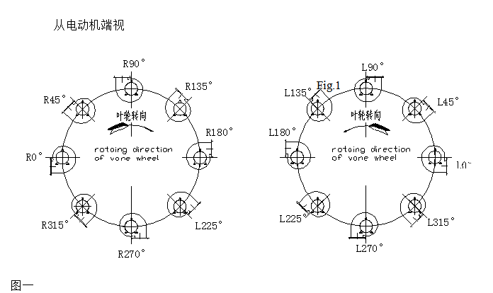 順轉(zhuǎn)(右轉(zhuǎn))—從電動機(jī)端正視,葉輪按順時針方向旋轉(zhuǎn),以“R”表示。