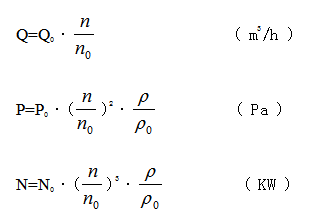 式中Q0 、P0 、N0、為標(biāo)準(zhǔn)大氣壓和標(biāo)準(zhǔn)轉(zhuǎn)速n0時的流量、壓力、功率、氣體密度。